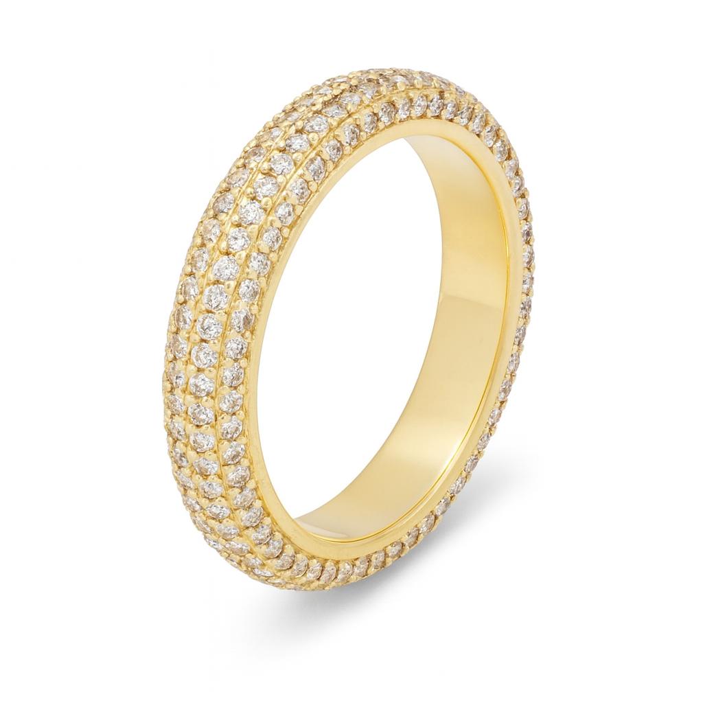 Anel aparador cravejado em zircônias contendo cinco carreiras. Esse modelo atrai muitos olhares por ser uma peça tão esplendida e glamurosa, com ele você não passará despercebida.