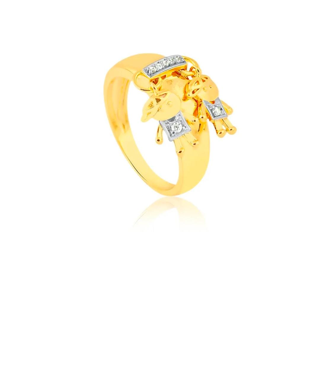 Design: Anel com dois pingentes meninos com pedras de zircônias folheado a ouro 18K