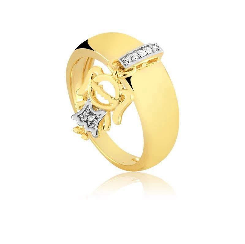 ANEL COM PINGENTE MENINA COM PEDRAS DE ZIRCÔNIAS FOLHEADO A OURO