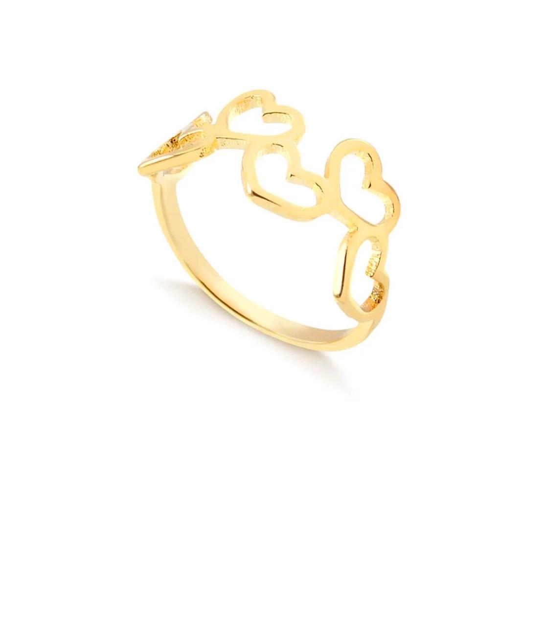 ANEL SEIS CORAÇÕES FOLHEADO A OURO