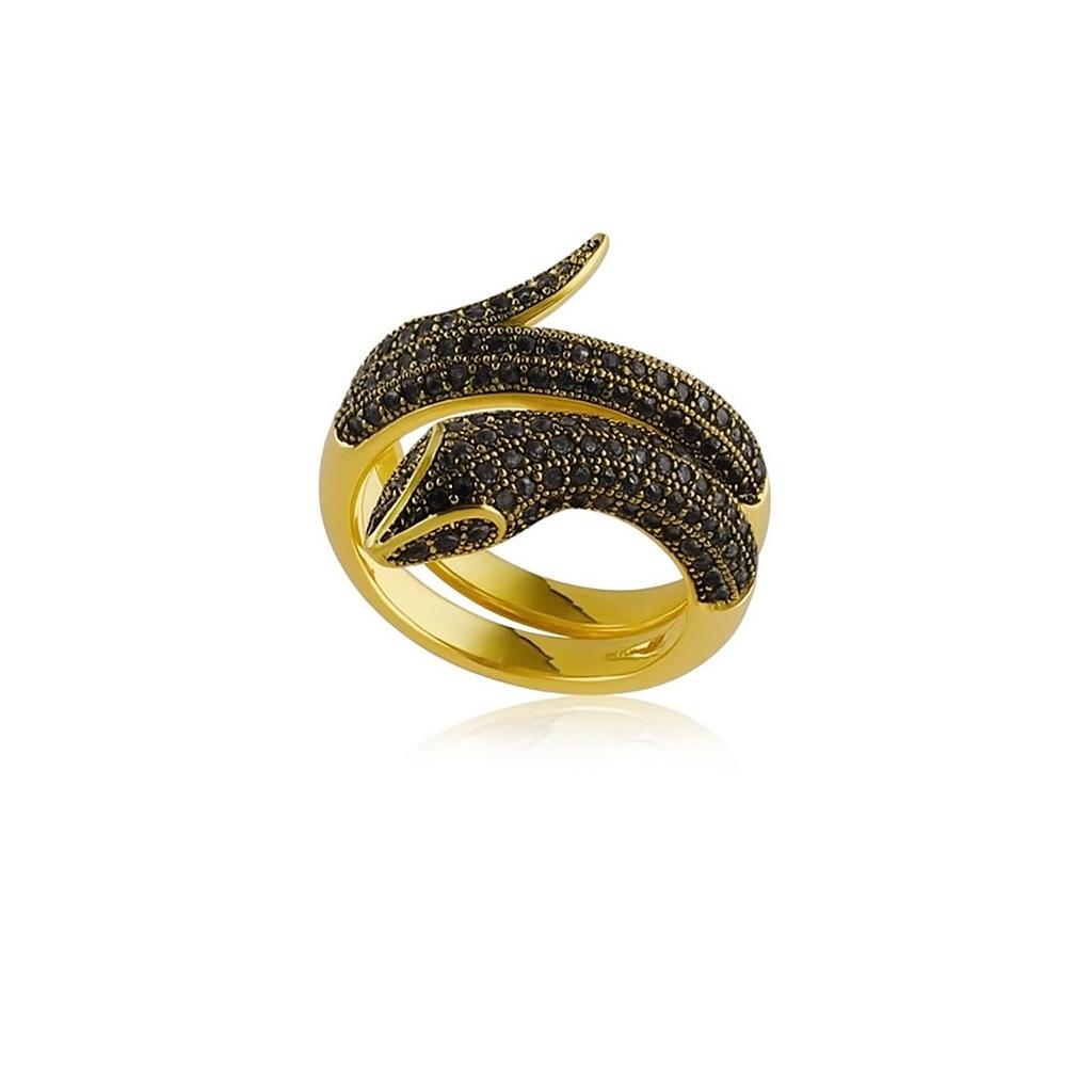 Design: Anel serpente com pedras de zircônia folheado a ouro 18K