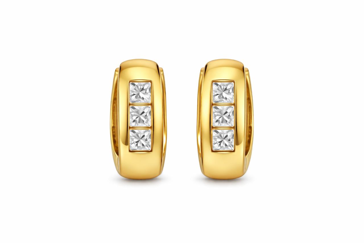 Brinco argola click com design moderno e acabamento sofisticado. Possui 3 zircônias quadradas, cuidadosamente cravadas na parte frontal, proporcionando brilho elegante e uniforme.
