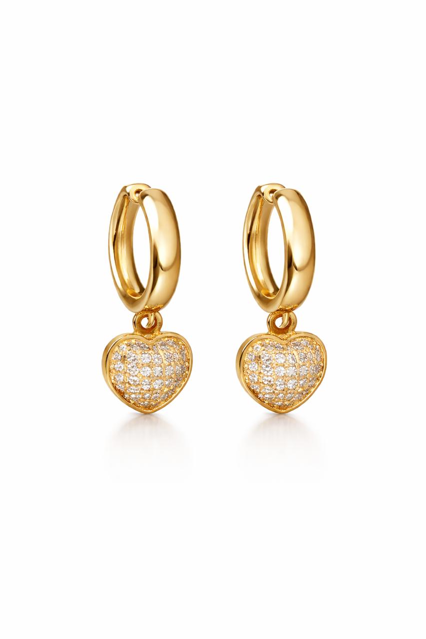 BRINCO ARGOLA CLICK COM PINGENTE DE CORAÇÃO CRAVEJADO COM ZIRCÔNIAS FOLHEADO A OURO