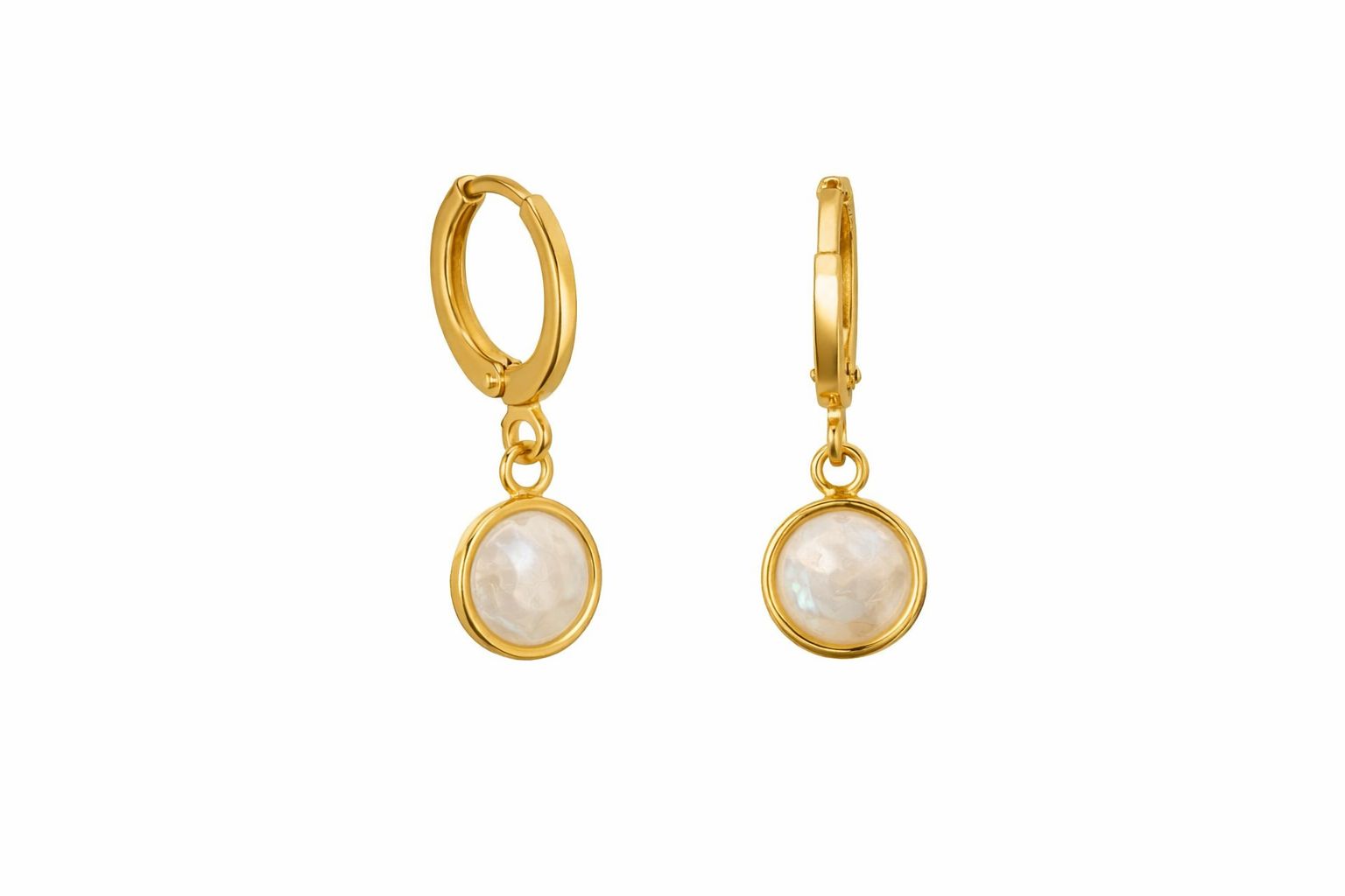 BRINCO ARGOLA CLICK COM PINGENTE REDONDO MADREPÉROLA FOLHEADO A OURO