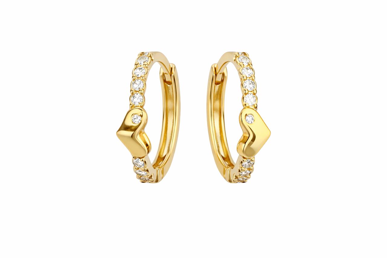 BRINCO ARGOLA CLICK COM ZIRCÔNIAS E CORAÇÃO ASSIMÉTRICO FOLHEADO A OURO