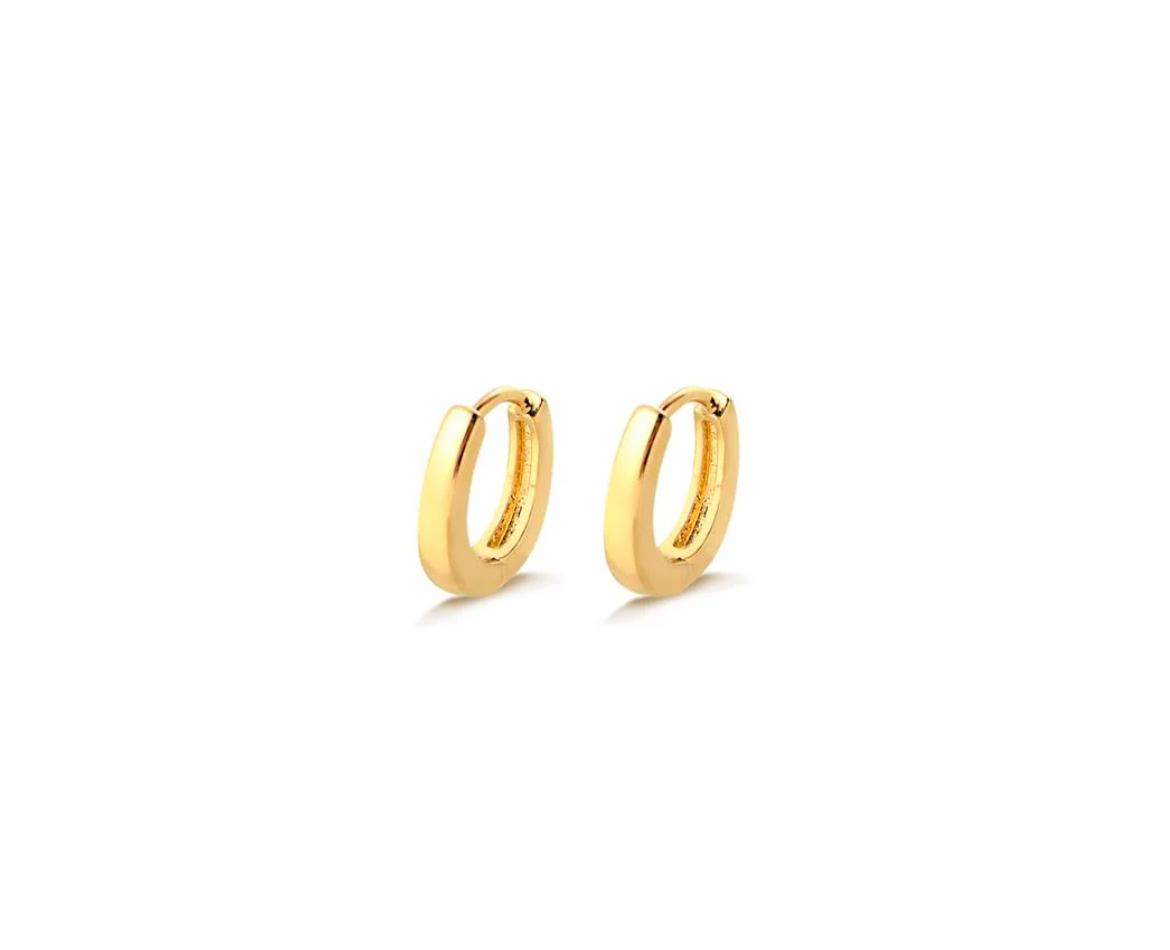 Design: Brinco argola click oval lisa pequena folheado a ouro 18K
