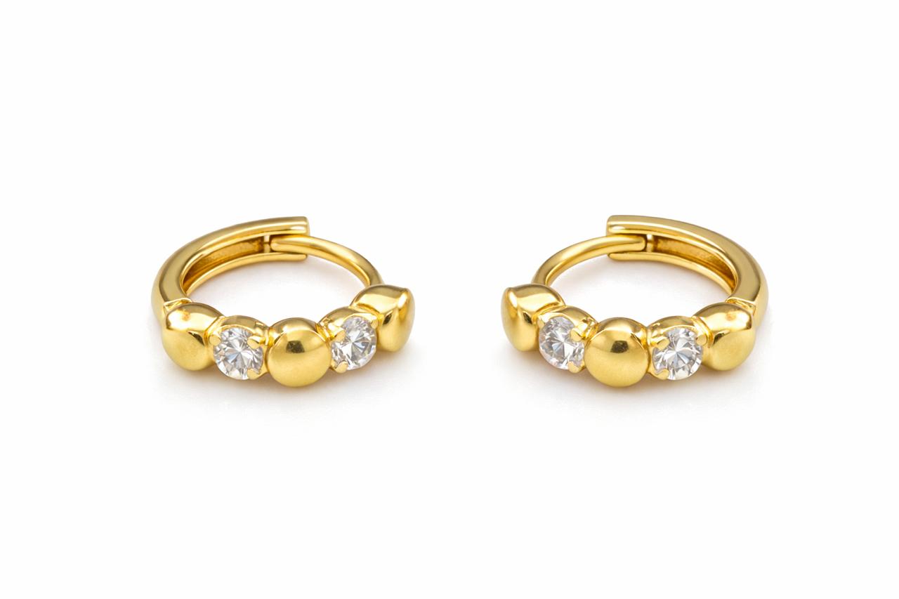 BRINCO ARGOLA CLICK PEQUENA COM ESFERAS E ZIRCÔNIAS FOLHEADO A OURO