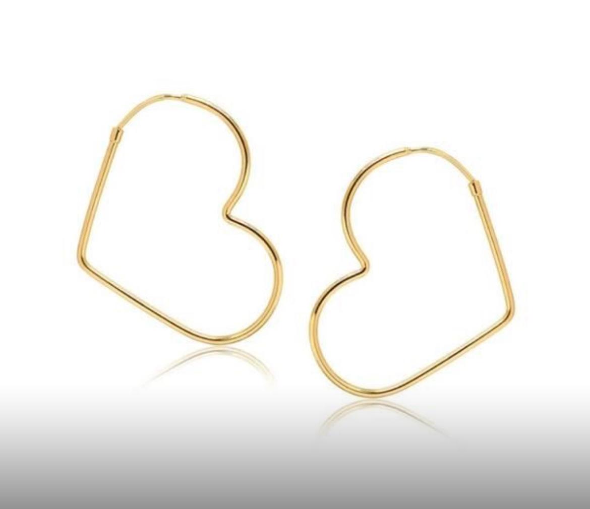 • Design: Formato de coração que substitui o tradicional círculo das argolas, criando um visual delicado e inovador.