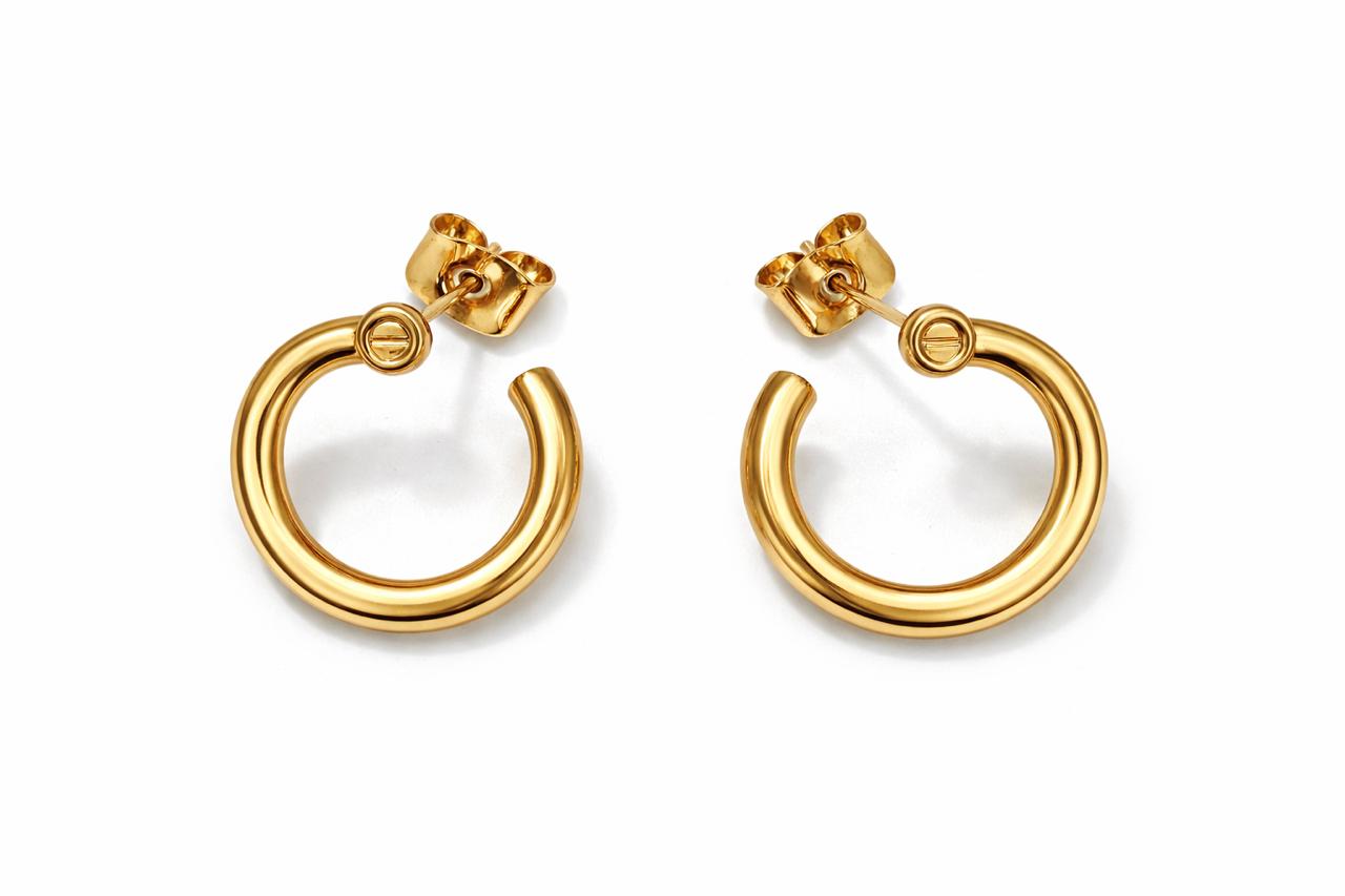 Possui formato de argola pequena, com pino central e fechamento por tarraxa, garantindo conforto e segurança no uso. É uma peça coringa, perfeita para uso diário, combinações com outros brincos ou para quem prefere acessórios discretos e modernos.