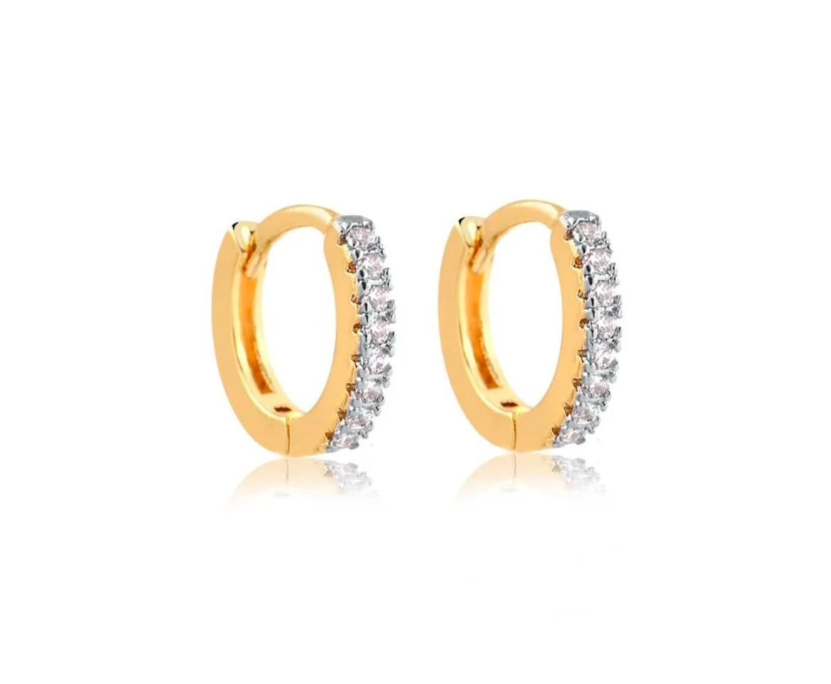 BRINCO ARGOLINHA CLICK MÉDIA COM PEDRAS DE ZIRCÔNIAS FOLHEADA A OURO