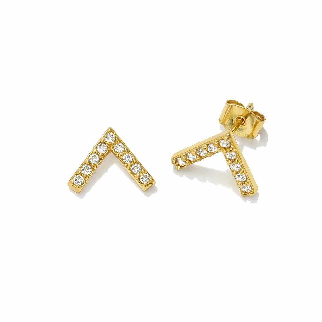 BRINCO CHEVRON CRAVEJADO COM ZIRCÔNIAS CRISTAL FOLHEADO A OURO