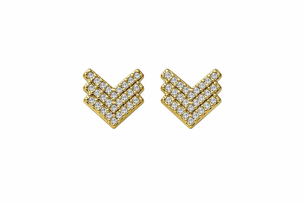 BRINCO CHEVRON CRAVEJADO COM ZIRCÔNIAS CRISTAL FOLHEADO A OURO