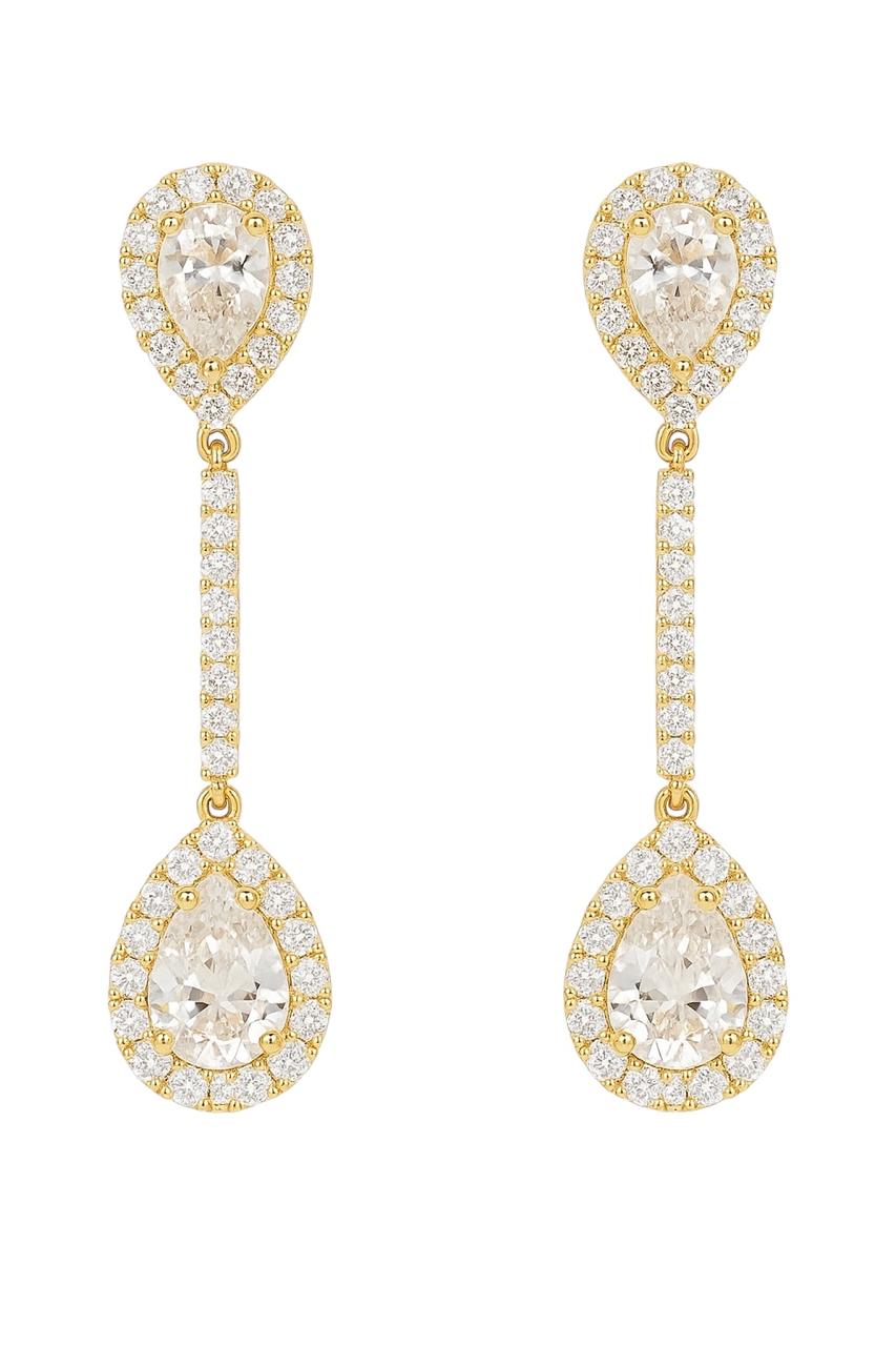 Design: Brinco duas gotas craavejadas de zircônia folheado a ouro 18K