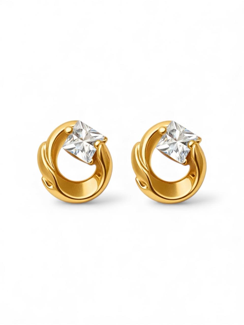 BRINCO FORMATO ARGOLA TORCIDA COM ZIRCÔNIA QUADRADA FOLHEADO A OURO