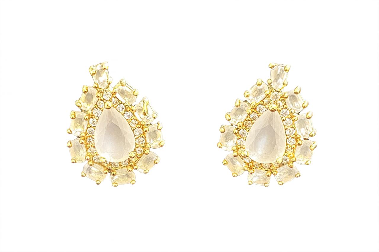 Design: Brinco gota rsa leitoso cravejado de zircõnia folheado a ouro 18K