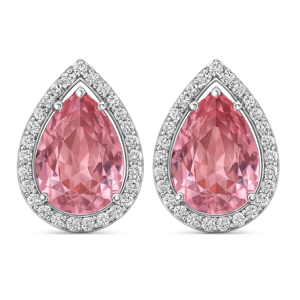 Design: Brinco gota zircônia rosa folheado a rôdio branco