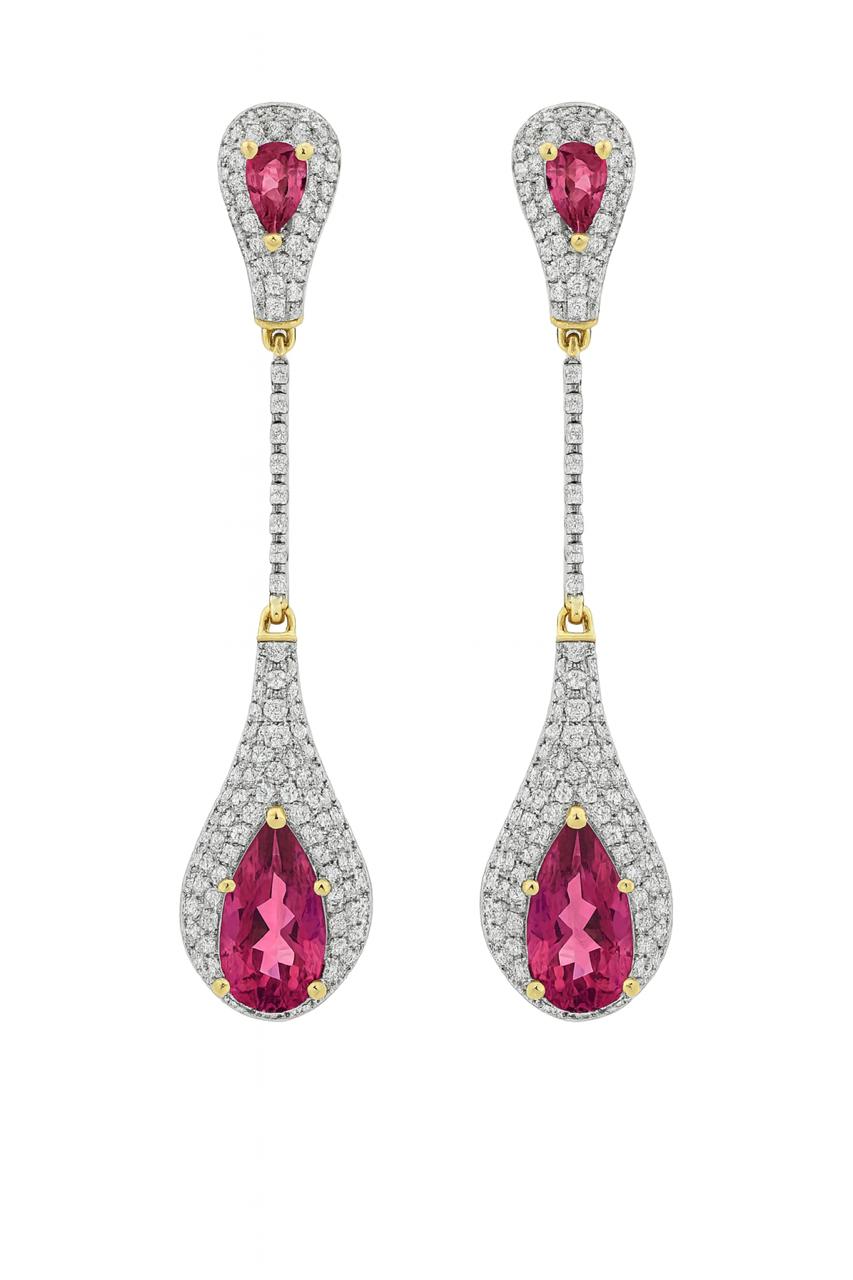 Design: Brinco gotinha longa rosa pink cravejado de zircõnias cristal folheado a ouro 18K