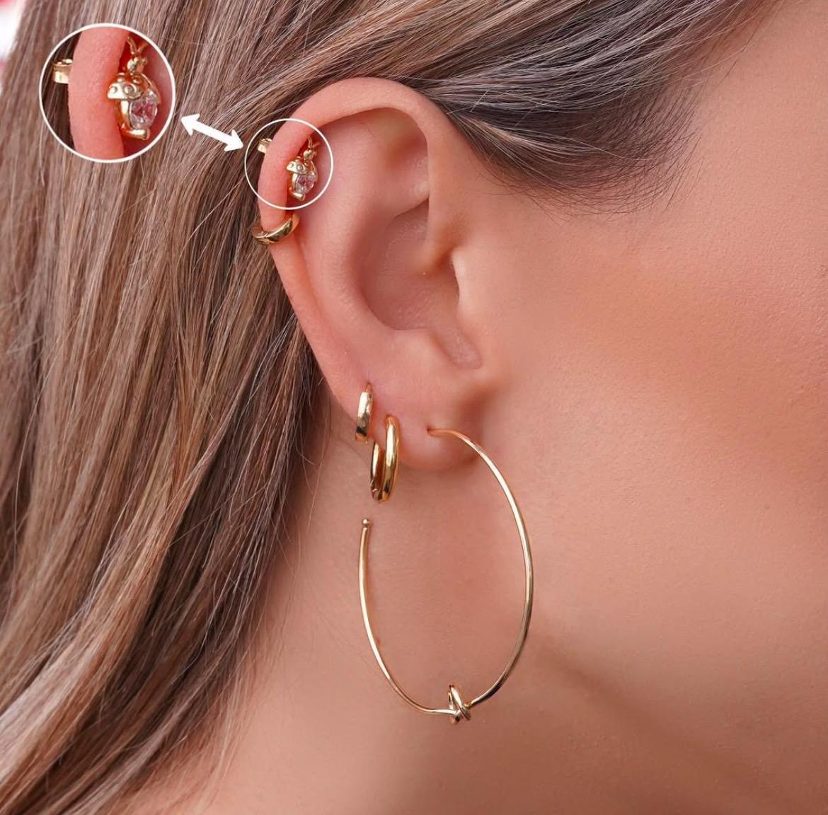 O brinco meia argola lisa com detalhe de nó folheado a ouro é uma peça elegante e sofisticada, perfeita para quem prefere acessórios clássicos com um toque moderno. Aqui estão os destaques desse modelo: