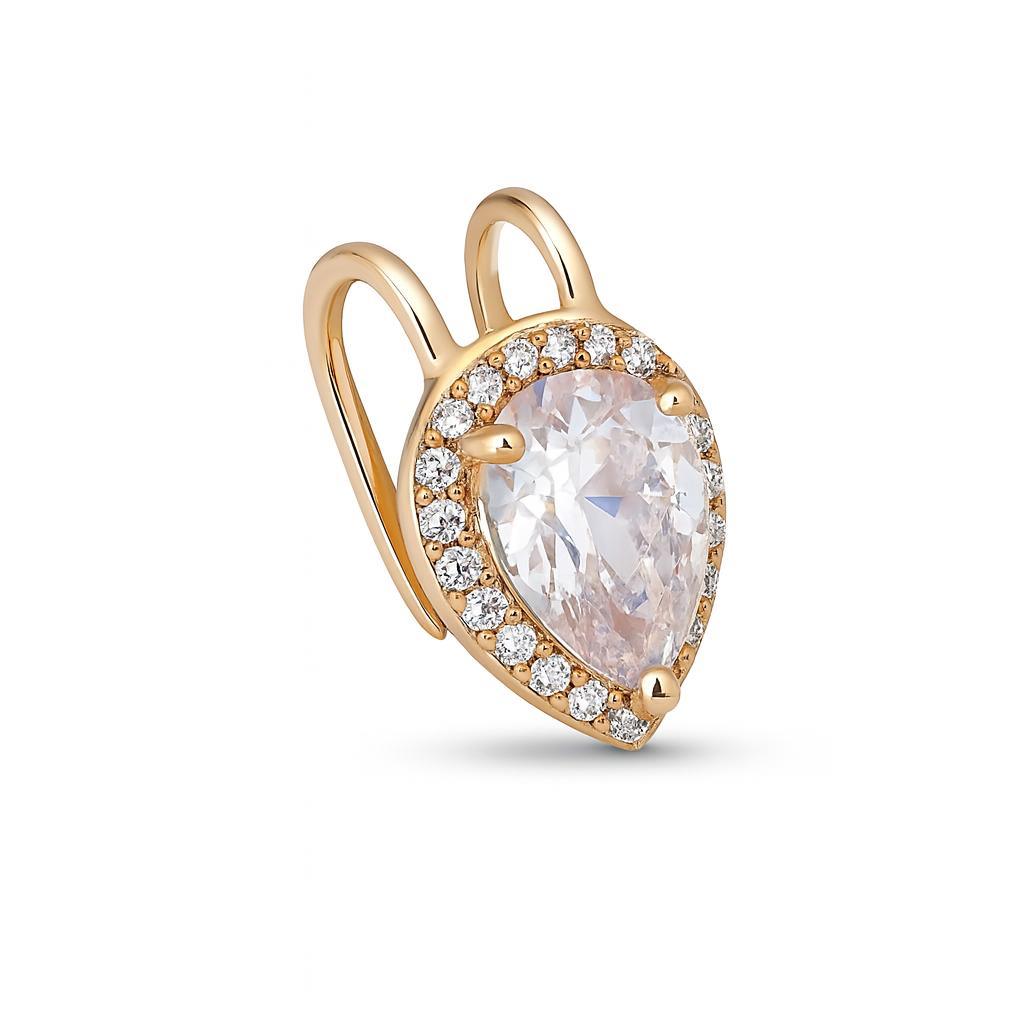 Design: Brinco piercing fake gota cravejado de zircônia folheado a ouro 18K