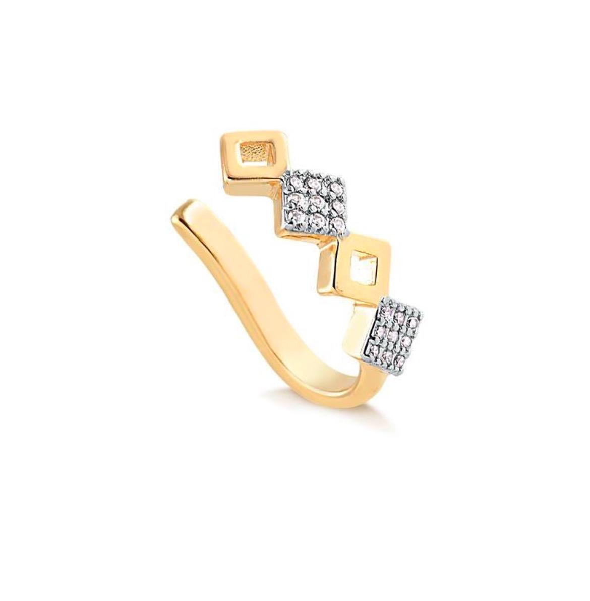 Design: Brinco piercing triângulos liso e pedras de zircônias folheado a ouro 18K