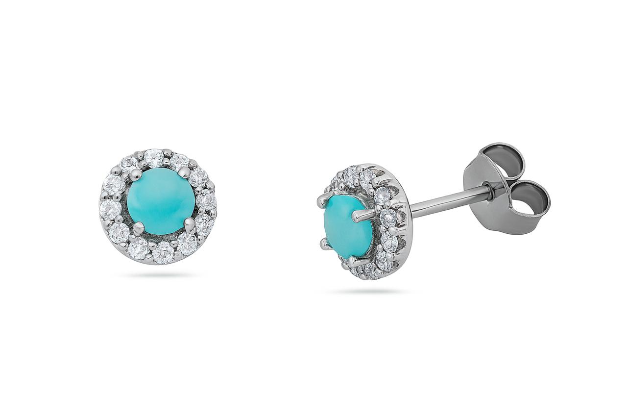 Design: Brinco ponto de luz azul leitoso com circulo cravejado de zircônia folheado a rôdio negro