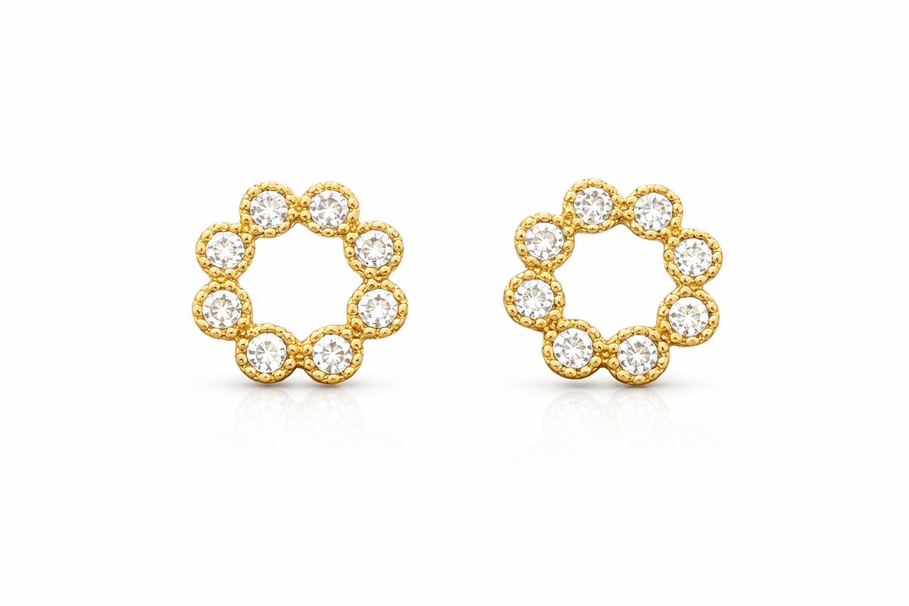 BRINCO REDONDO VAZADO COM OITO ZIRCÔNIA CRISTAL FOLHEADO A OURO