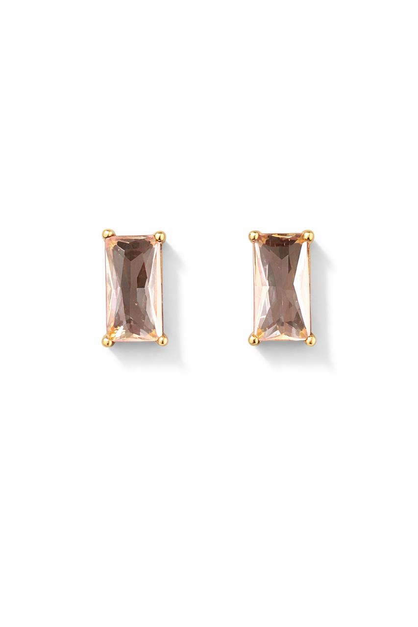 BRINCO RETANGULAR COM PEDRA DE ZIRCÔNIA ROSA FOLHEADO A OURO