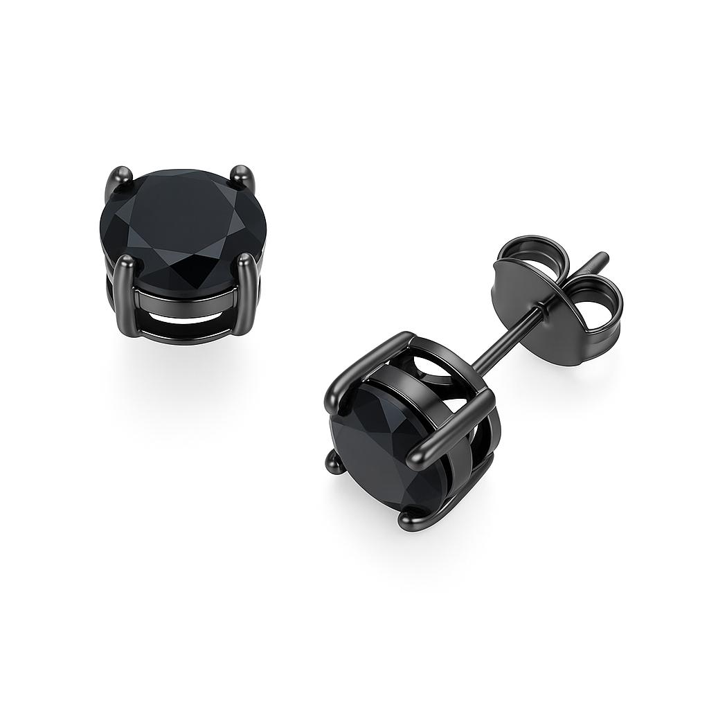 Design: Brinco solitário redondo com pedra de zircônia negra folheado a rôdio negro