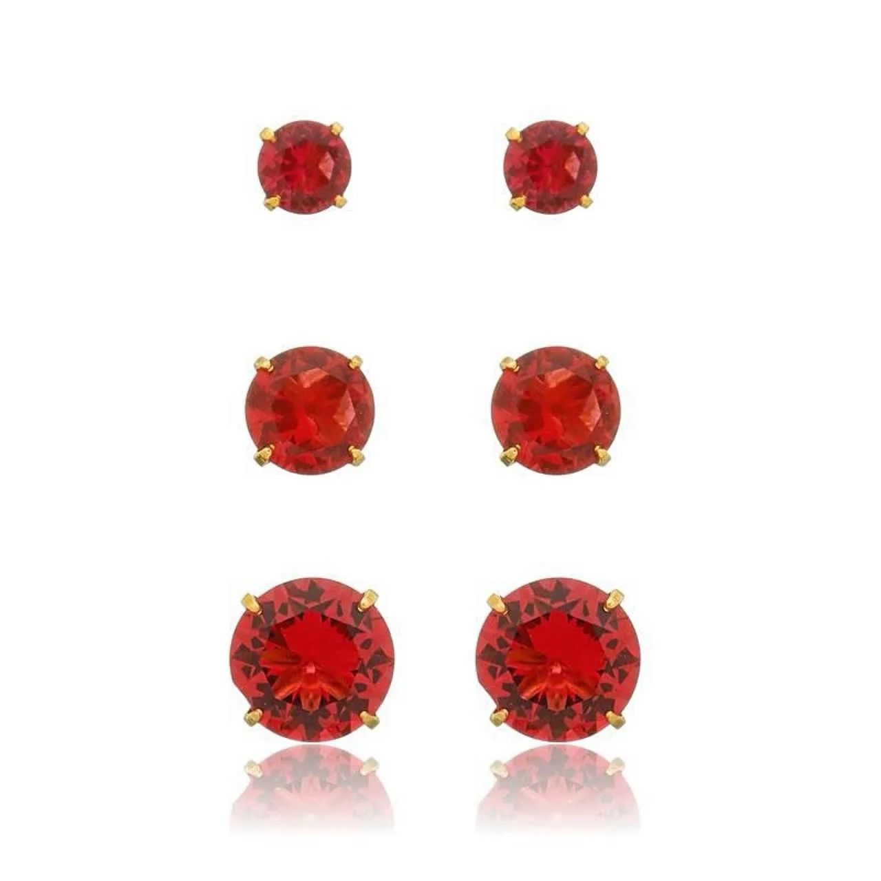 Beleza clássica com um toque refinado! Este trio de brincos apresenta zircônias vermelhas de alta qualidade, realçadas pela cravação inglesa, que garante maior segurança e brilho às pedras. Folheado a ouro, este conjunto oferece três tamanhos diferentes, ideais para compor looks sofisticados e personalizados em múltiplos furos.