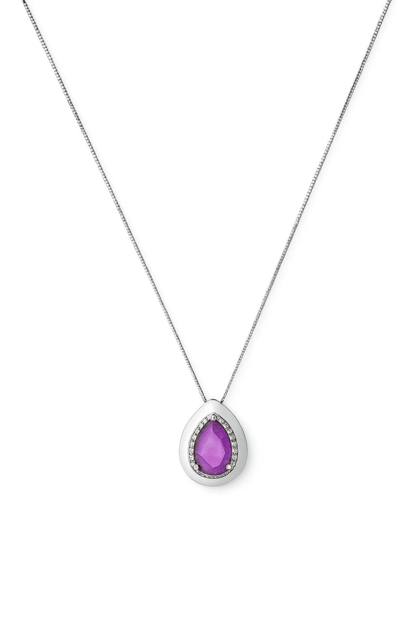 Design: Colar pingente gota zircônia lilás fuzion folheado a rôdio branco