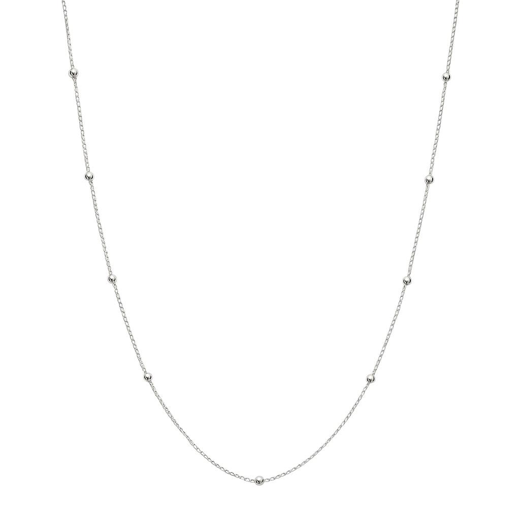 Um colar minimalista e elegante feito de corrente fina com pequenas esferas espaçadas ao longo do comprimento. Ideal para complementar visuais leves e sofisticados, perfeito para uso diário ou em ocasiões especiais que pedem sutileza. Feito em metal prateado, combina bem com outros acessórios ou usado sozinho como destaque.