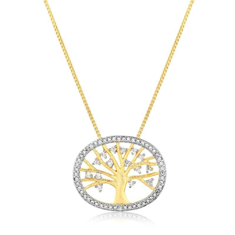 GARGANTILHA COM PINGENTE ARVORE DA VIDA COM PEDRAS DE ZIRCÔNIAS FOLHEADO A OURO