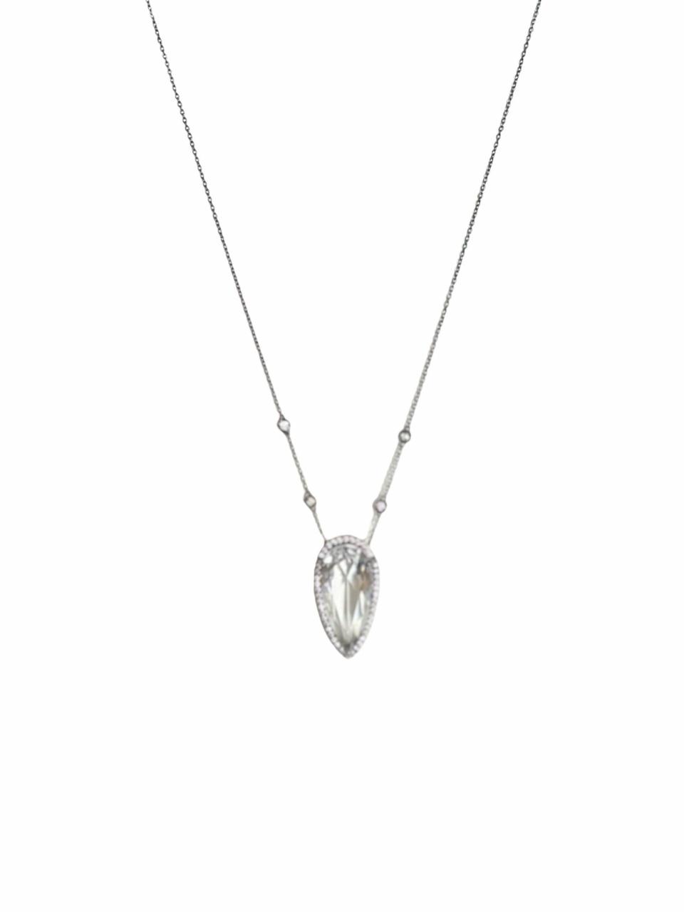Um colar sofisticado com pingente em formato de gota, cravejado com zircônias que realçam a beleza do cristal. O acabamento em ródio negro confere elegância e brilho, tornando esta peça perfeita para ocasiões especiais ou para adicionar um toque de luxo ao seu dia a dia.