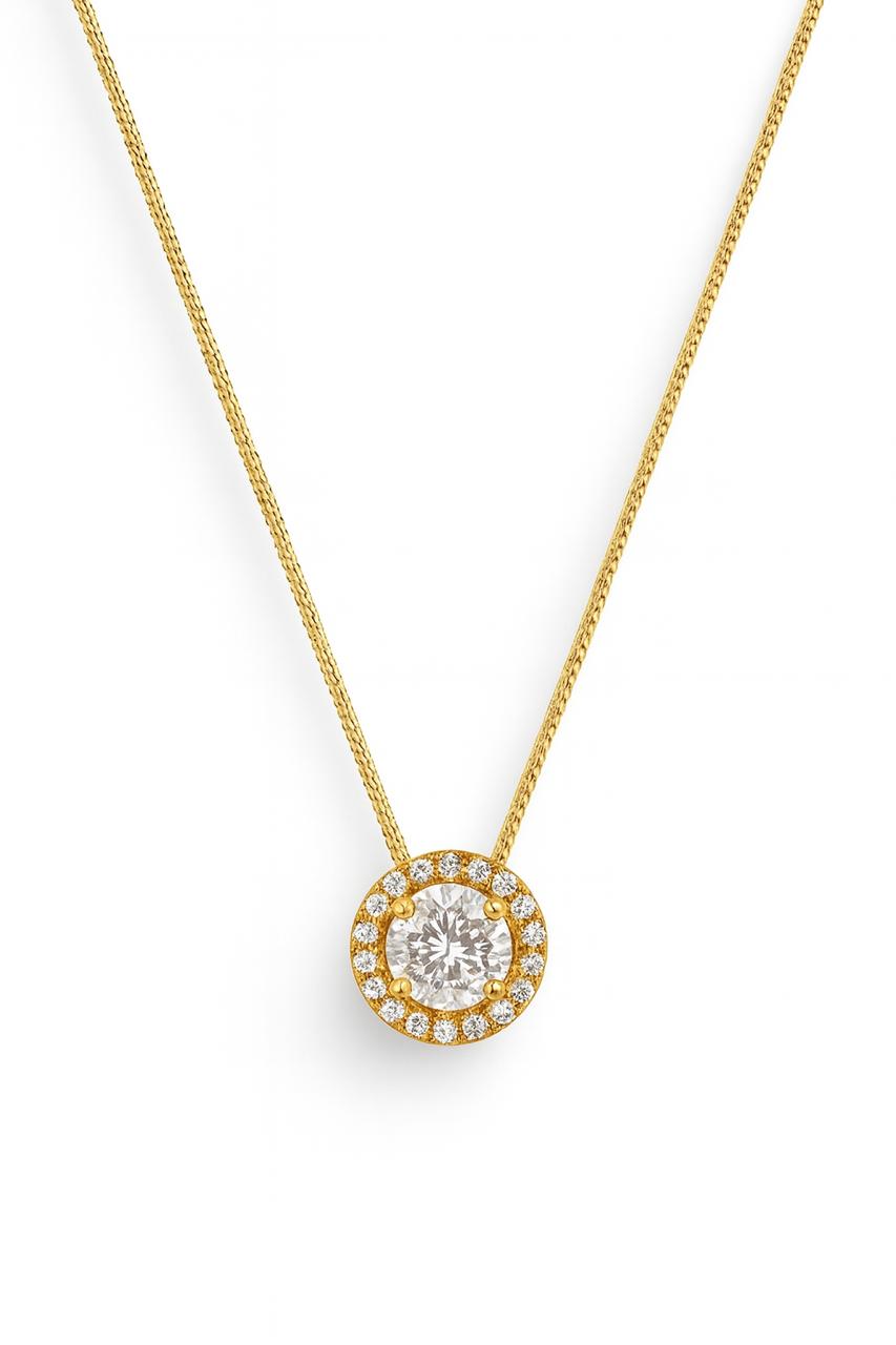 Design:Colar pingente ponto de luz grande zircônia cristal folheado a ouro 18K