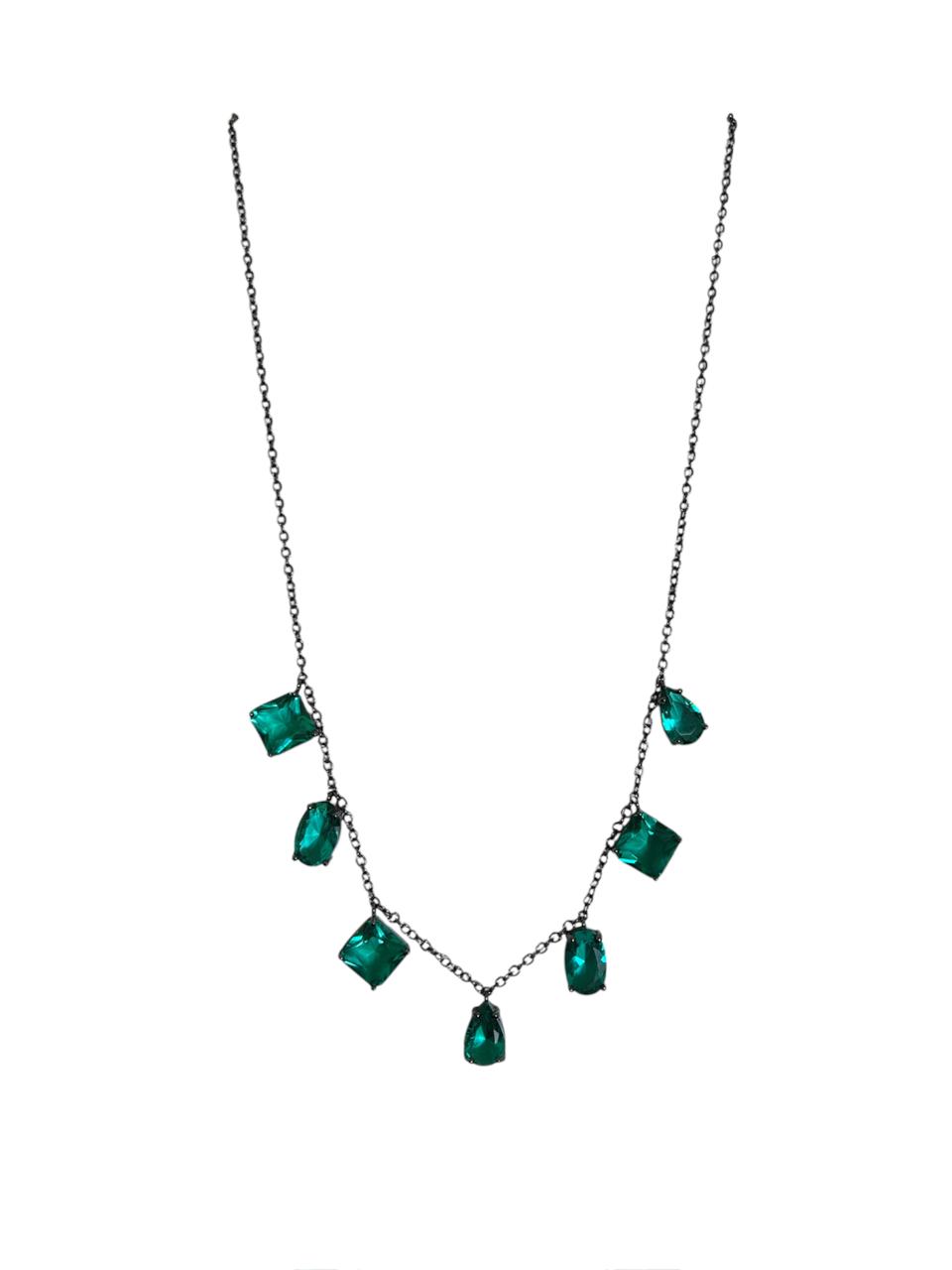 GARGANTILHA PINGENTES PEDRAS DE ZIRCÔNIA VERDE ESMERALDA FOLHEADO A RÔDIO NEGRO