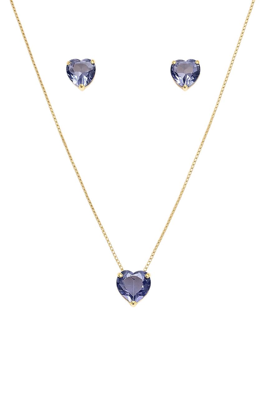 Design: Conjiunto coração pedra de zircônia lilás folheado a ouro 18K
