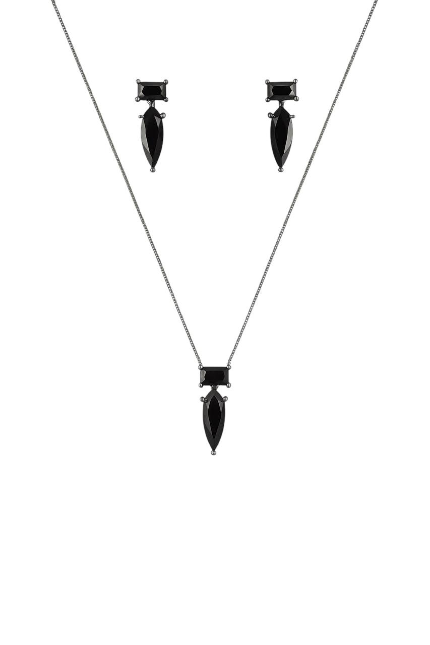 CONJUNTO GEOMÉTRICO ZIRCÔNIA NEGRA FOLHEADO A RÔDIO NEGRO