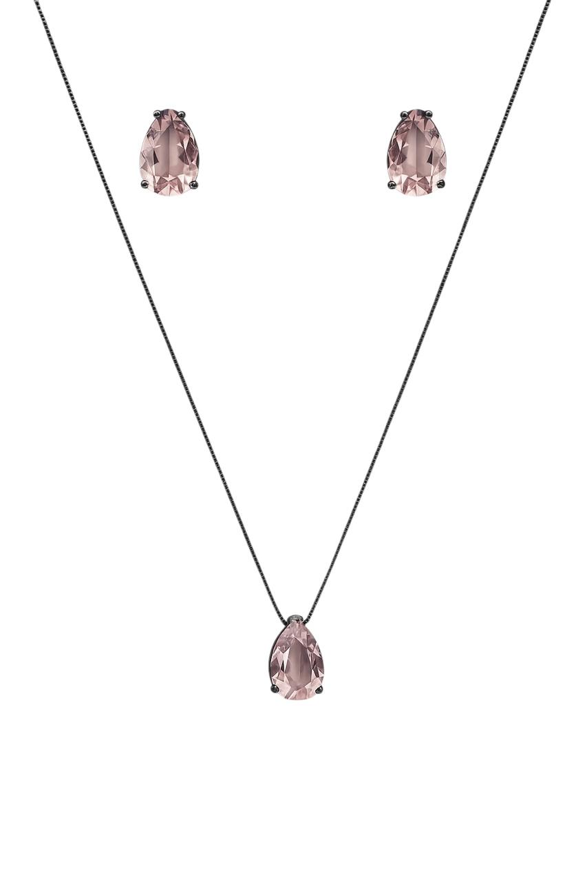 CONJUNTO GOTA ZIRCÔNIA ROSA CLARO FOLHEADO A RÔDIO NEGRO