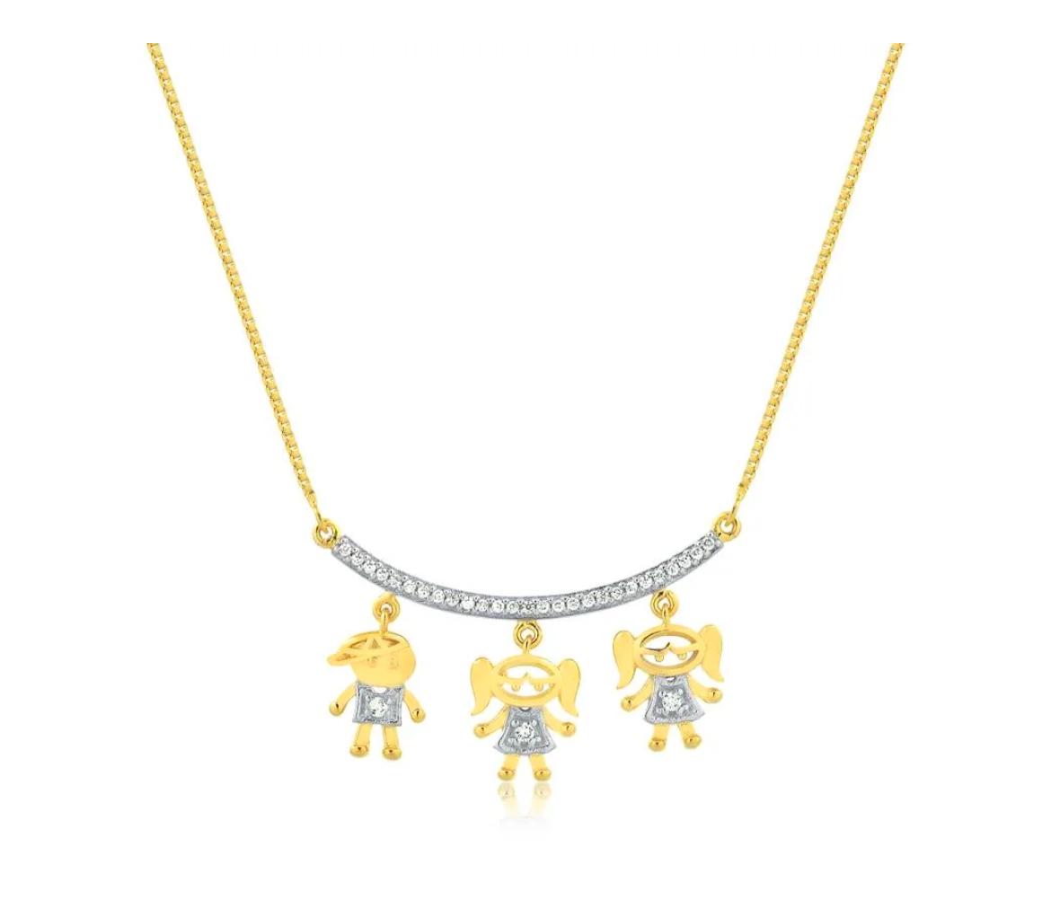 GARGANTILHA CANGA COM DUAS MENINAS E UM MENINO COM PEDRAS DE ZIRCÔNIAS FOLHEADO A OURO