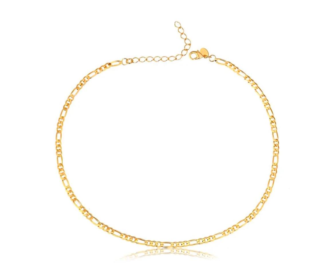 • Design: Modelo choker, com elos finos no estilo 3x1 (três elos pequenos seguidos de um maior), proporcionando um visual leve e refinado.