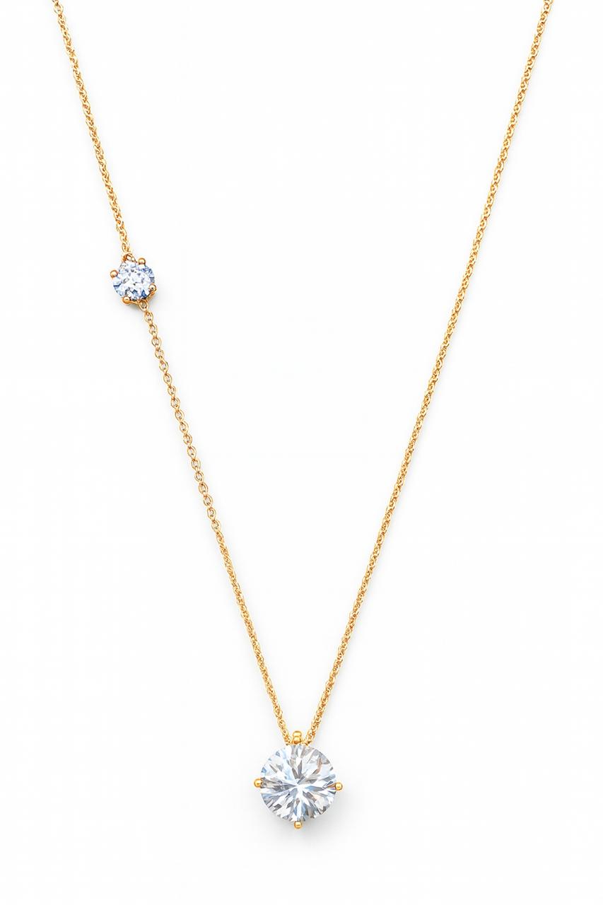 Design: Gargantilha dois pontos de luz zircônia folheado a ouro 18K
