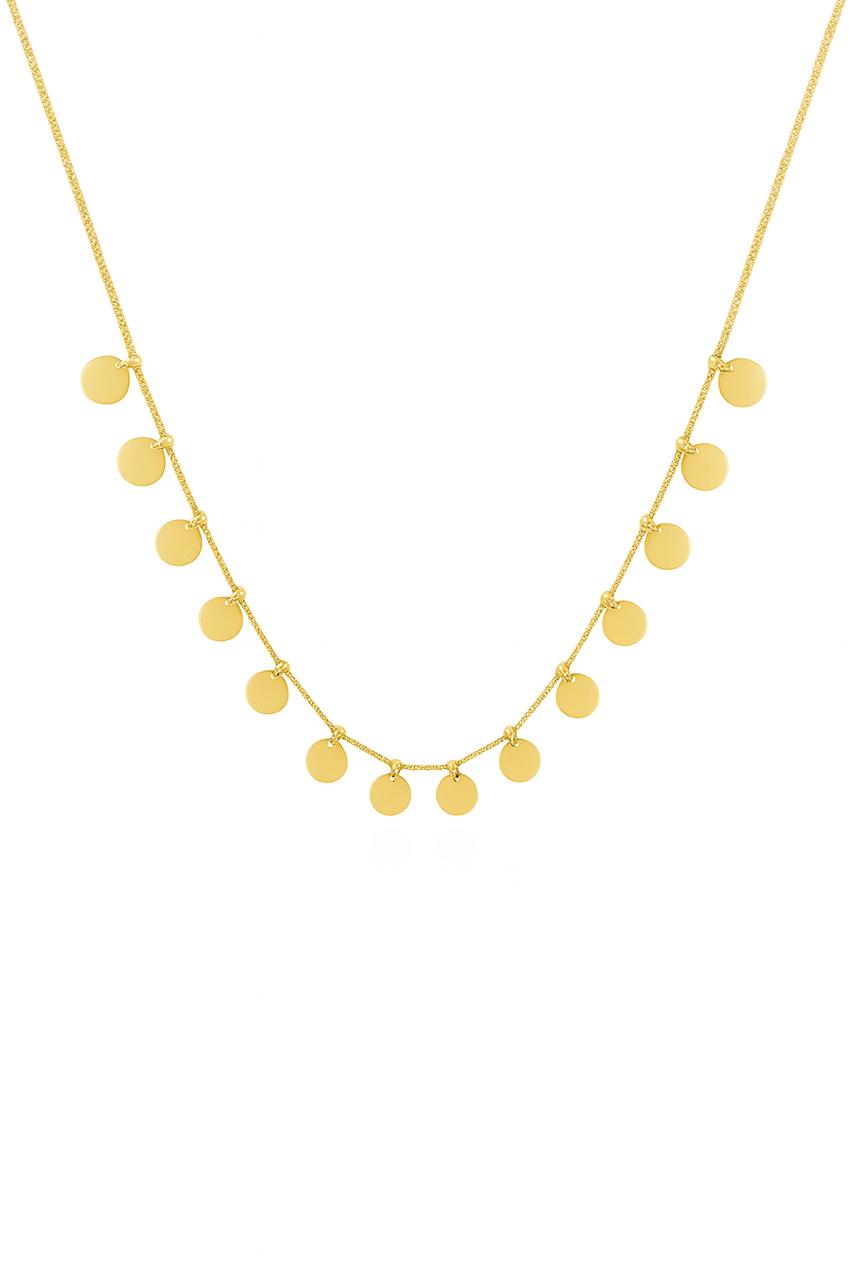 Gargantilha delicada folheada a ouro, composta por 15 medalhinhas polidas que garantem brilho sofisticado e movimento elegante. Uma peça moderna e versátil, ideal para usar sozinha ou em mix de colares.