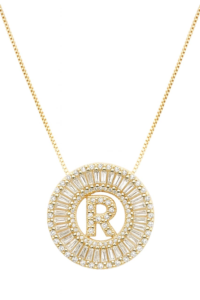 Design: Gargantilha pingente mandala letra cravejado de zircônia folheado a ouro 18K