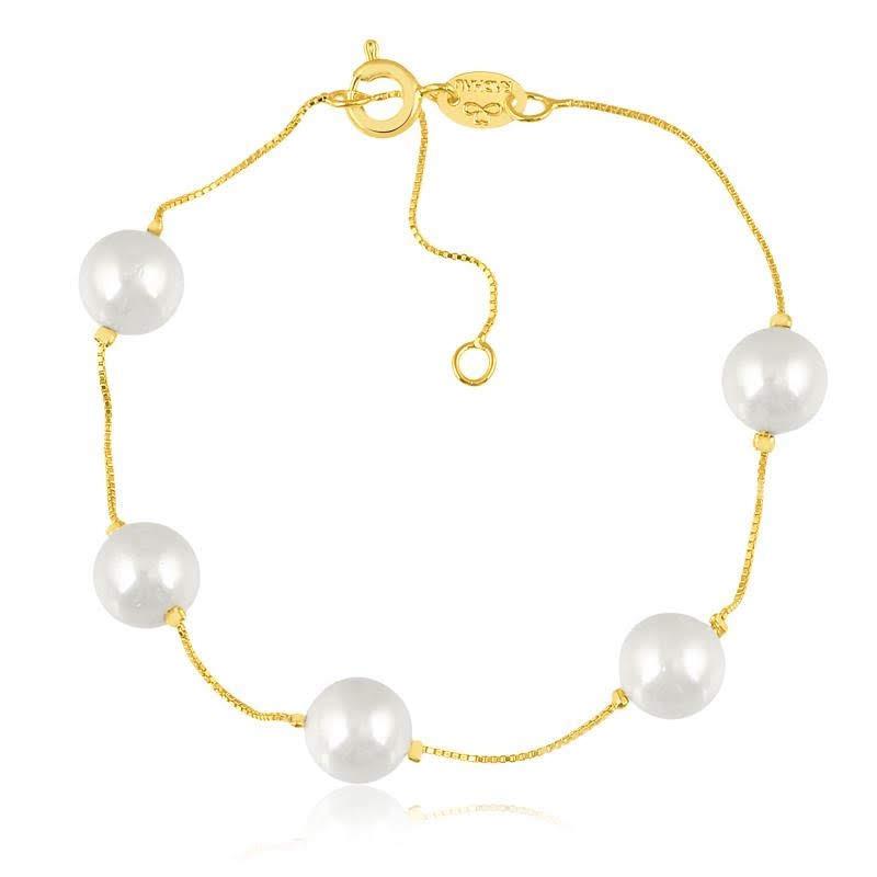 Design: Pulseira com pérolas shel 8MM e corrente veneziana fina folheado a ouro 18K