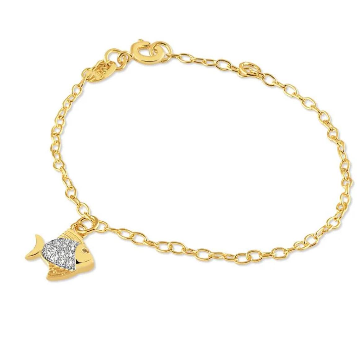 Design:Pulseira com pingentte peixinho folheado a ouro 18K com pedras de zircônias.