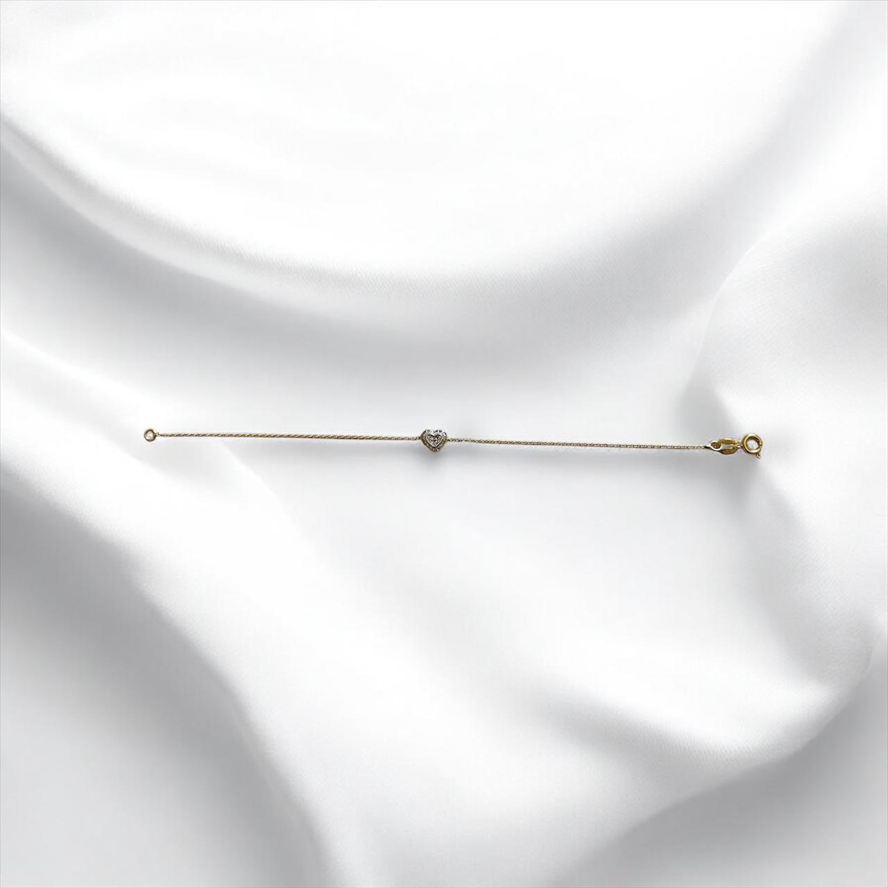 Design: Pulseira coração cravejado de zircônia folheado a ouro 18K