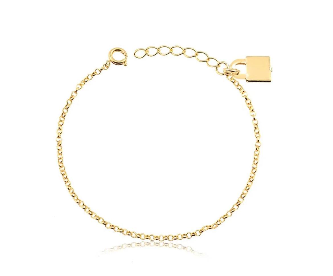 Design: Pulseira malha portuguesa com cadeado folheada a ouro 18K