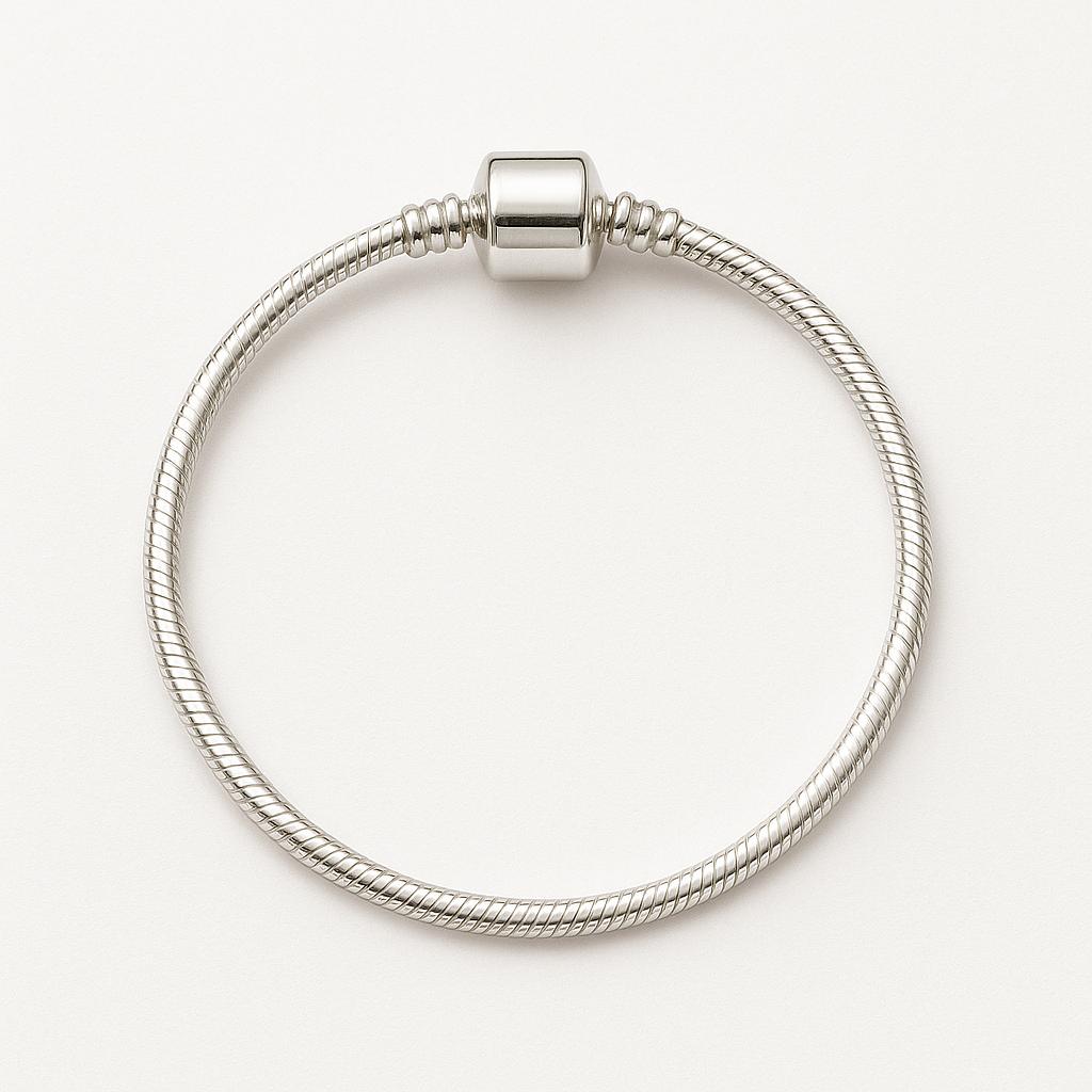 Com sua malha snake flexível, acabamento premium e fecho cilíndrico icônico, ela permite montar combinações únicas com charms, separadores e muranos, criando uma joia personalizada com significado.