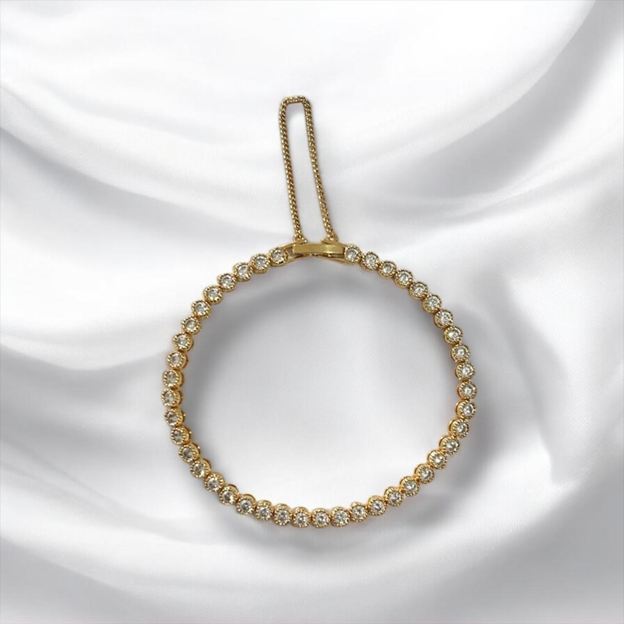 Design: Pulseira riviera redonda zircônia cristal com fecho pega ladrão folheado a ouro 18K