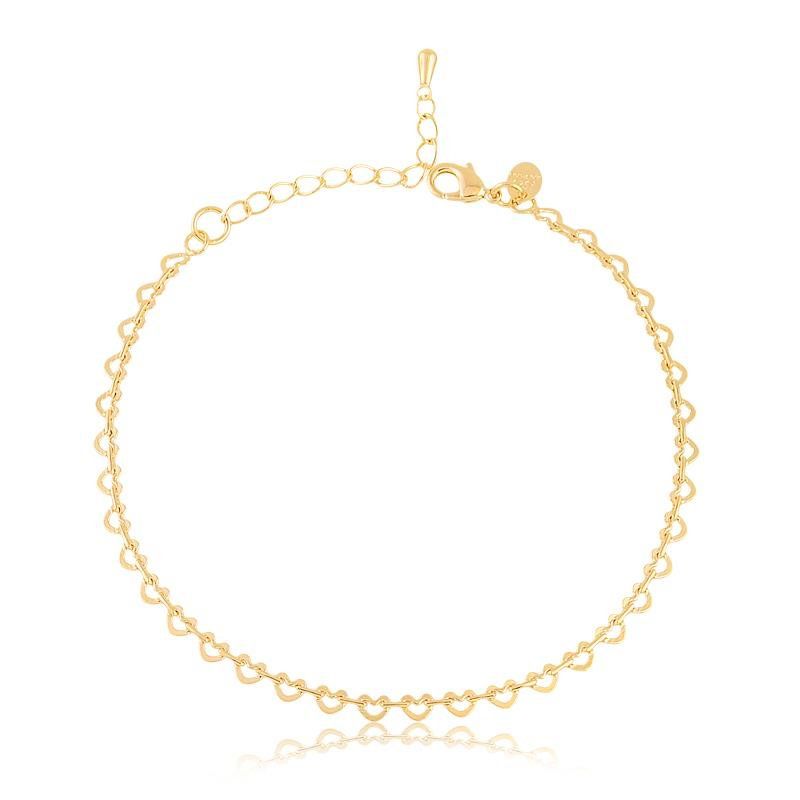 Design: Tornozeleira coraçãozinho vazado folheado a ouro 18K